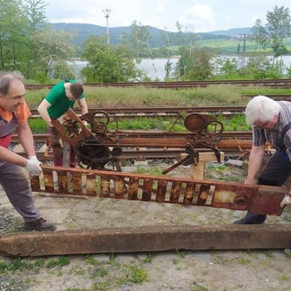 Práce byla zaměřena na posekání ploch v kolejišti, okolí skladiště i příjezdové komunikace, tříčlenná parta pod vedením pana Jaroslava se zhostila úkolu zbavit letité koroze dovezeného mechanického návěstidla a odpoledne se mohl provést nátěr základovou barvou.